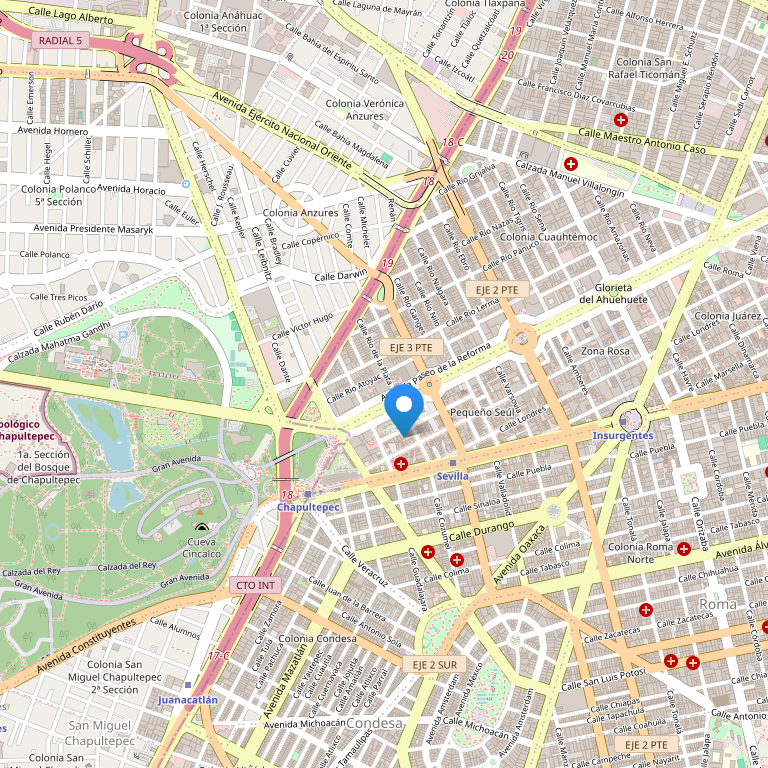 - Café Royal - ресторан с открытой и закрытой обеденными зонами и с видом на Paseo de la Reforma. Международная кухня.