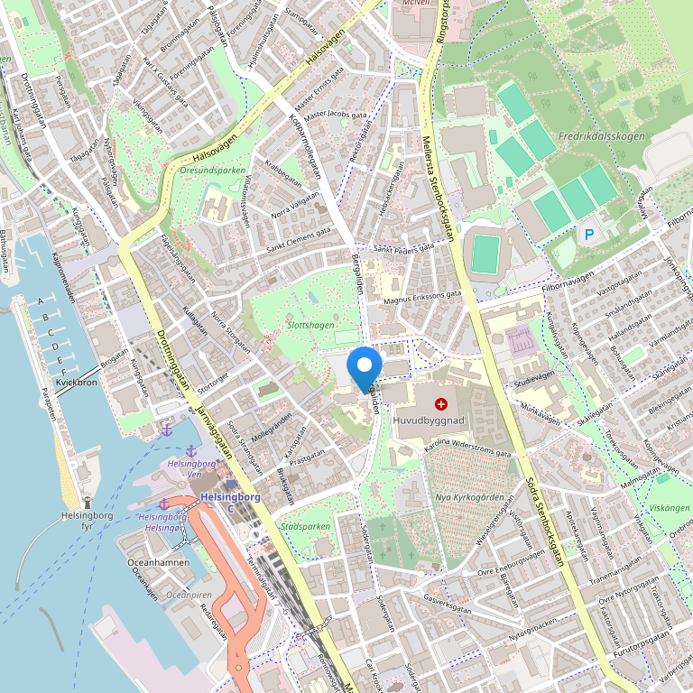 расположен в здании 19 века в самом центре Хельсингборга, рядом с башней Карнан.