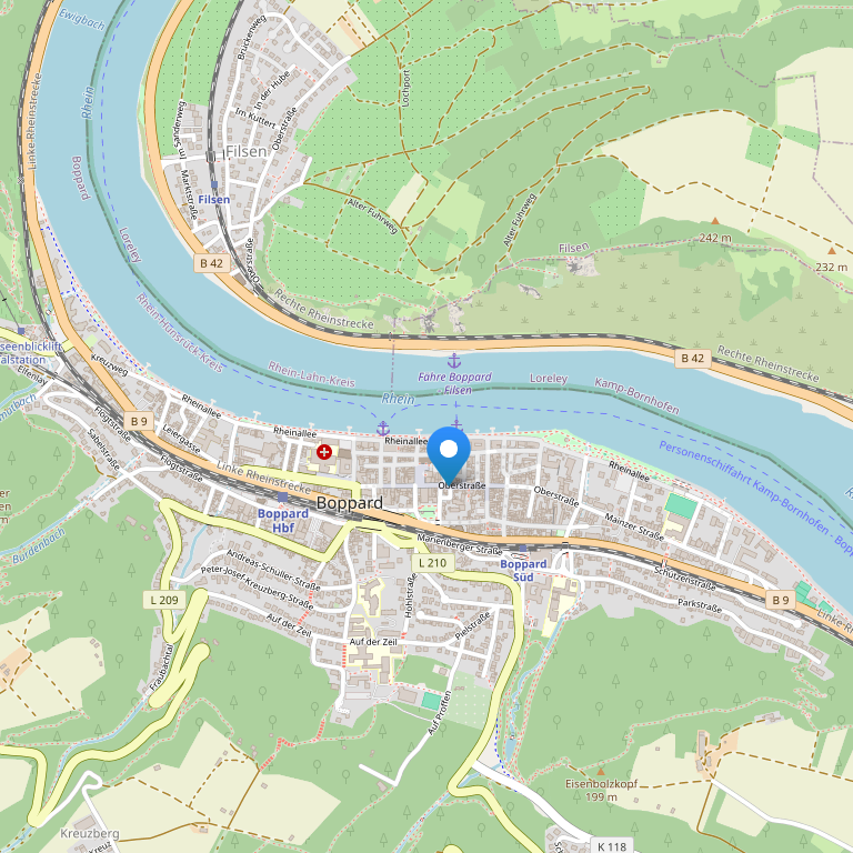 Отель расположен в городе Боппард на набережной Рейна.
