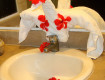Когда зашли увидели в ванной композицию с живыми цветами - очень мило). В дальнейшем ничего подобного не было: не зависимо оставляли ли мы денежку или нет.