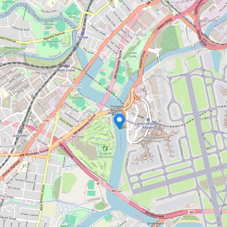 Отель расположен в 500 м от международного аэропорта Сиднея, на берегу реки Cooks River, в 15 км от Сиднея, в 20 км от пляжа BONDI BEACH, в 3 км от пляжа BRIGHTON BEACH.