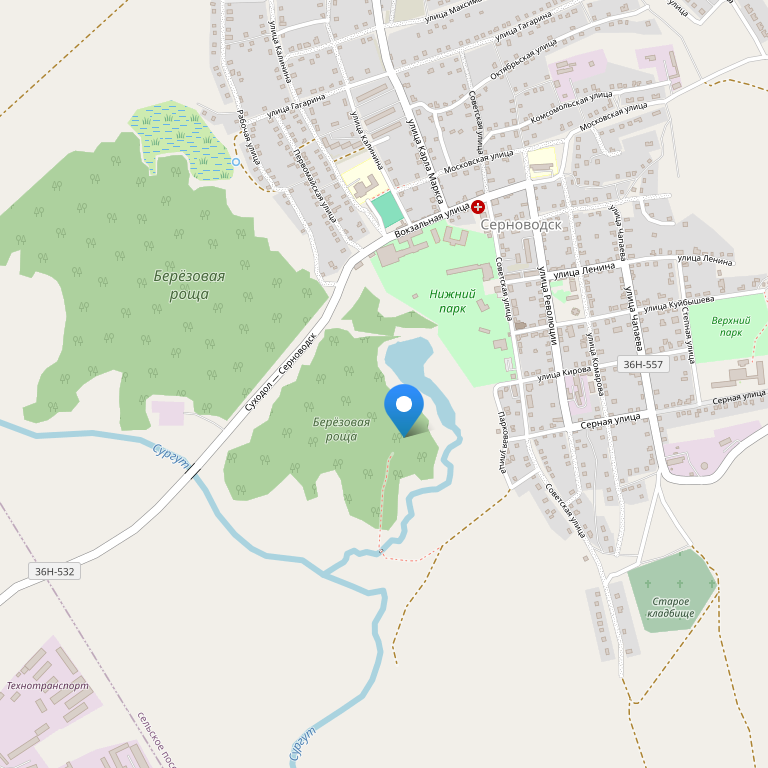 Санаторий расположен в 120 км от Самары, на юго-западном склоне Серноводской возвышенности, недалеко от реки Сургут, на берегу Серного озера.