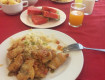 Завтраки нормальные, яйца, сосиски, хлопья, картошка, макароны, мясо, суп, выпечка, ёгурты. Голодным на останешься. Да ещё фрукты, арбуз, ананас.