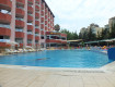 Ехали в автобусе 3 часа, останавливались один раз, чтобы пойти в туалет. Рядом с туалетом был магазинчик, можно было, что-нибудь прикупить. В автобусе лежала бесплатная питьевая вода. Когда приехали в отель, нас сразу заселили и дали номер с видом на бассейн.