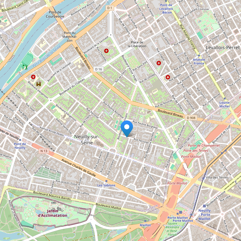 Отель расположен в Париже недалеко от станции Пон-де-Нейи в нескольких минутах от Булонского леса.