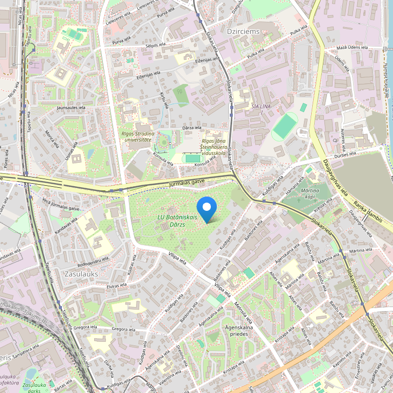 В 15 минугах езды от аэропорта Риги, в 5 минутах езды от Рижского порта, в 10 минутах езды от вокзала. Рядом с Ботаническим садом. Открыта в 2001 году, 2 этажа.