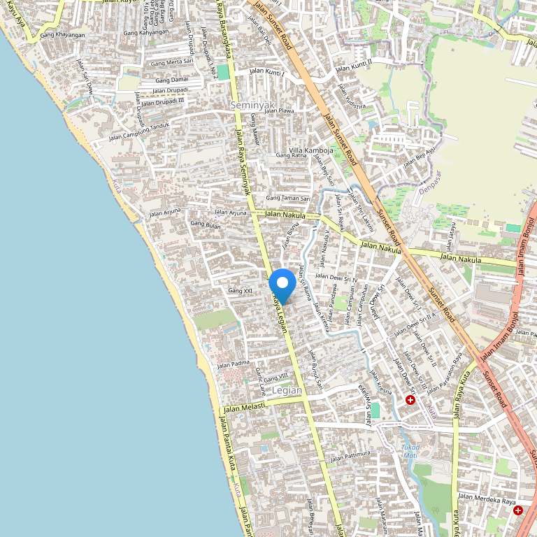 Отель расположен в курортном районе Легиан, в 5 минутах ходьбы от пляжа Легина, в 35 минутах езды от аэропорта.