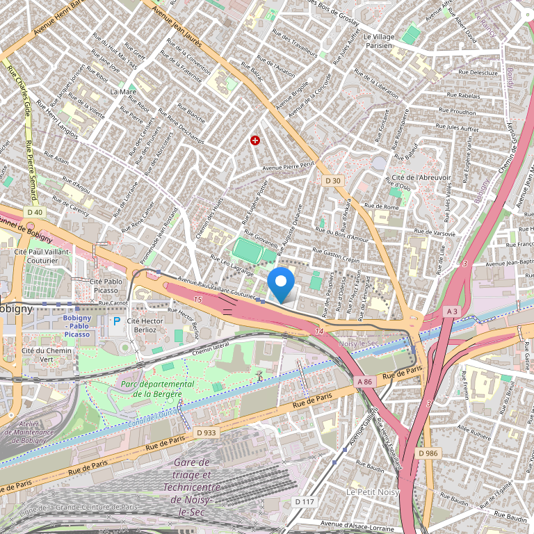 Отель расположен в городке Бобиньи, в 10 минутах езды на метро от Парижа, в 12 км от аэропорта Roissy, в 50 км от парка развлечений Parc Astérix, в 5 минутах ходьбы от станции метро Bobigny Pablo Picasso, в 350 метрах от трамвайной остановкки Jean Rostand.