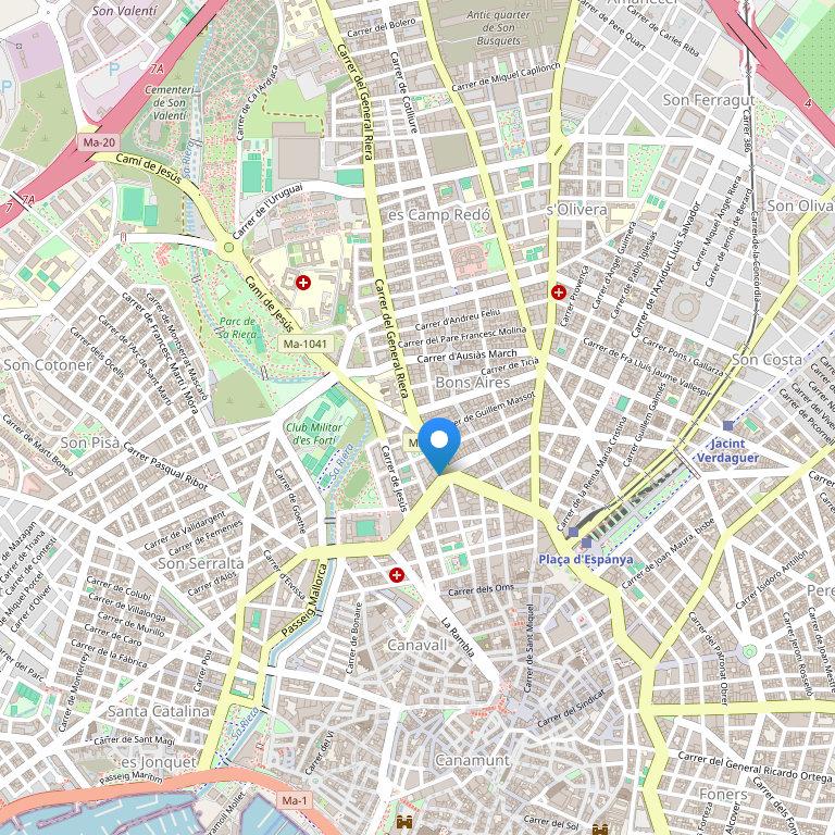 Отель расположен в жилом районе города Пальма де Майорка, в 1 км от Площади Испании, где находятся железнодорожный вокзал и автобусная станция, в 2 км от выставочного центра, в 7 км от международного аэропорта, в 3 км от пристани, в 5 км от пляжа, в 6 км от поля для гольфа.