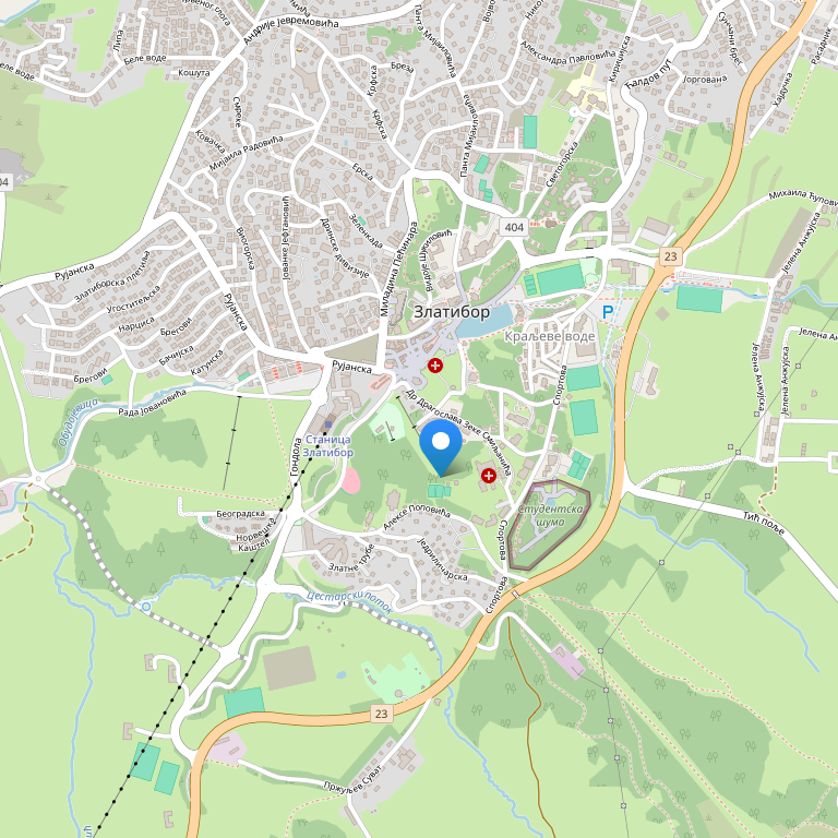 Санаторий расположен в 5 минутах от центра живописного курортного места Златибора, в окружении густых хвойных деревьев и на идеальной высоте 1000 метров над уровнем моря. Гора Златибор, высотой 1000 метров, расположена 230 км к югу от г. Белграда, 309 км от Адриатического побережья.