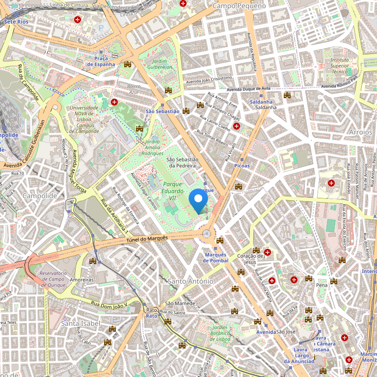 Отель удобно расположен между 3 станциями метро (Parque, Picoas и Marquês de Pombal), напротив парка Эдуарда VII и площади Marquês de Pombal и недалеко от универмага El Corte Inglês и автобусной остановки. Оживленное Авеню Свободы с магазинами и ресторанами находится в 10 минутах ходьбы от отеля. До исторического центра Лиссабона можно легко добраться со станции метро Parque (4 остановки).