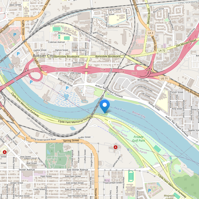 Отель расположен рядом с шоссе Interstate 20 и является одной из самых близко расположенных гостиниц к Bass Pro Shops и Louisiana Boardwalk. Red River District и центр Шревепорта – менее чем в 2 милях, региональный аэропорт Шревепорта – в 9 милях от отеля. Отель также находится недалеко от кампуса колледжа Centenary College of Louisiana и университета Southern University. Отель является одной из гостиниц, расположенных в районе плавучих казино Boomtown Casino (в 1 км), Horseshoe Bossier City (в 1,6 км) и DiamondJacks Casino-Bossier City (0,8 км).