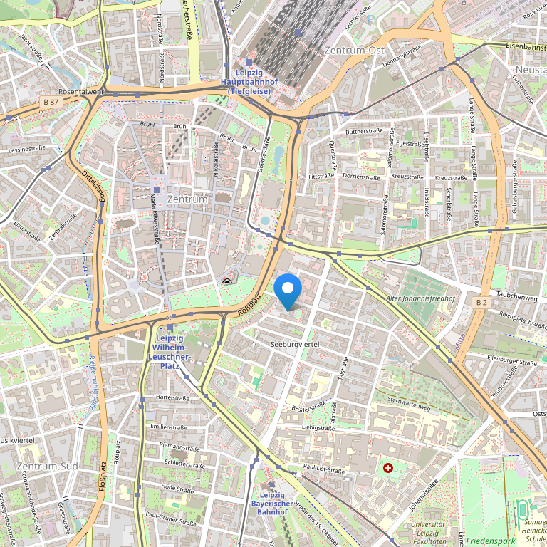 Отель находится всего в 10 минутах ходьбы от центрального вокзала Лейпцига и исторического Старого города. В 5 минутах ходьбы от отеля расположены несколько трамвайных остановок и оперный театр Лейпцига.