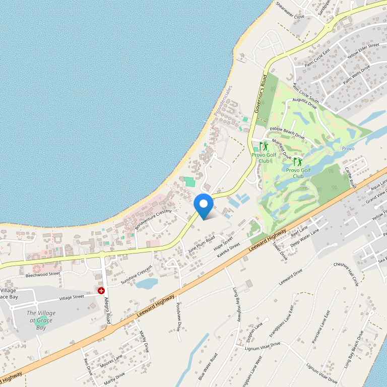 Отель расположен на острове Провденсиалис, в окружении тропического сада, всего в одном квартале от знаменитого пляжа Grace Bay Beach и в 500 м от комплекса Ports of Call Shopping Village с множеством ресторанов, баров, магазинов, дайвинг-центром, студией йоги, салоном красоты и Spa. Отель также находится недалеко от ряда достопримечательностей острова – таких как ферма Caicos Conch Farm (в 6,4 км), гольф-клуб Provo Golf Club и Национальный парк Princess Alexandra National Park (в 4,8 км). Международный аэропорт Провиденсиалиса – в 12,9 км от отеля.