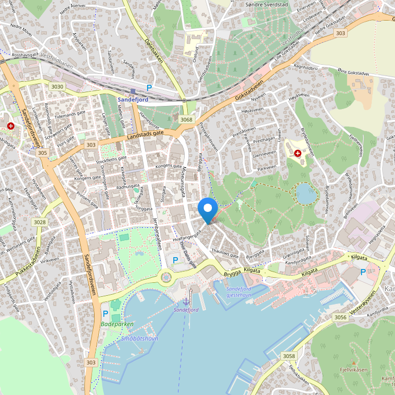 Отель расположен рядом с памятником Whaling Monument, изображающим охоту на китов, в нескольких минутах езды от аэропорта Sandefjord-Torp (в 7 км), музеев Town Museum (в 1 км), Sandefjord Museum (также известного как музей Commander Christen Christensen's Whaling) и Hvalfangstmuseet. Торговый центр Whale Shopping Mall – в 300 м от отеля, пляж, рыбалка – в 5 км от отеля. Автобусная остановка – в 100 м, аэропорт Осло – в 160 км, железнодорожная станция – в 0,5 км.