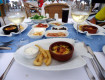 Большое разнообразие салатов, соусов, гарниров, мясных и рыбных блюд, 1 раз был мой любимый язык.