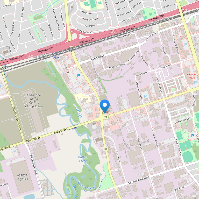 Отель располагается в городе Аякс, рядом с шоссе №401 и менее чем в часе езды от международного аэропорта Торонто, в непосредственной близости от озера Онтарио.