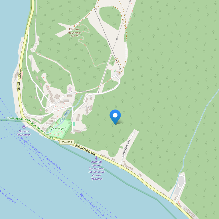 Отель расположен в Листвянке у истока Ангары. До аэропорта Иркутска около часа езды (65 км).