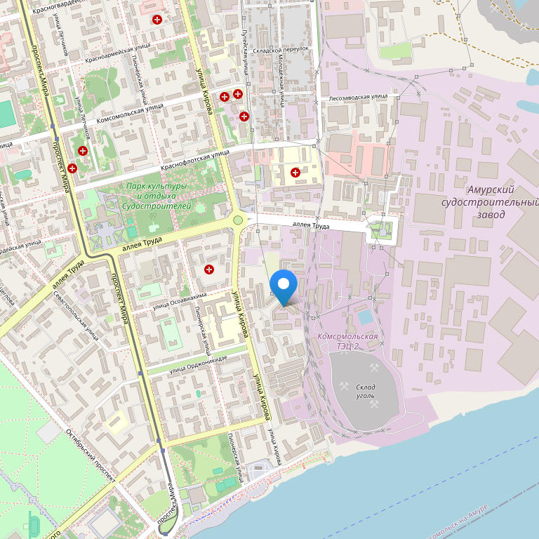Отель расположен в центре Комсомольска-на-Амуре. Рядом с отелем находится парк и набережная реки Амур.
