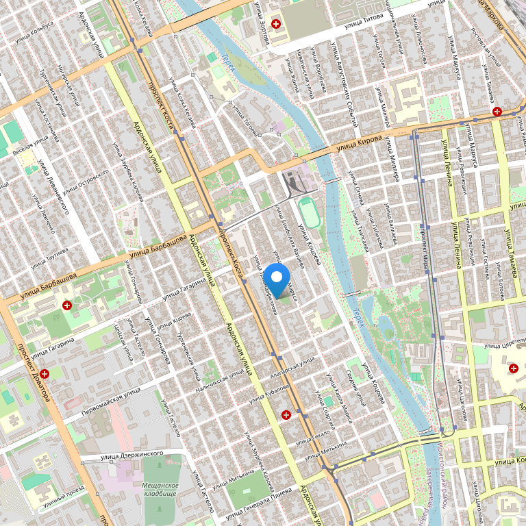 Отель расположен в центре города, на берегу реки Терек, по соседству с памятником архитектуры начала ХХ века - Суннитской мечетью.