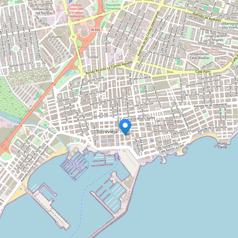 Апартаменты "Marina Internacional" расположены в центре города Торревьеха, недалеко от пляжа Асекьон на территории порта.Город Торревьеха находится к югу от провинции Аликанте, недалеко от Ориуэла Коста Гуардамар дель Сегура. Аэропорт Сан-Хавьер (Мурсия) находится в 34 км от отеля и в 43 км от Аликанте, поблизости расположена больница и поликлиника.