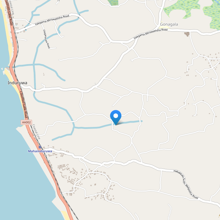 Отель расположен в Kaikawala в деревушке Индурва, в 65 км к югу от столицы острова города Коломбо, в 2 км от Индийского океана и недалеко от Бентоты – самого популярного места для занятия водными видами спорта на Шри-Ланке и одного из самых популярных туристических направлений. Международный аэропорт Bandaranaik – в 104 км, железнодорожная и автобусная станция Aluthgama – в 10 км.