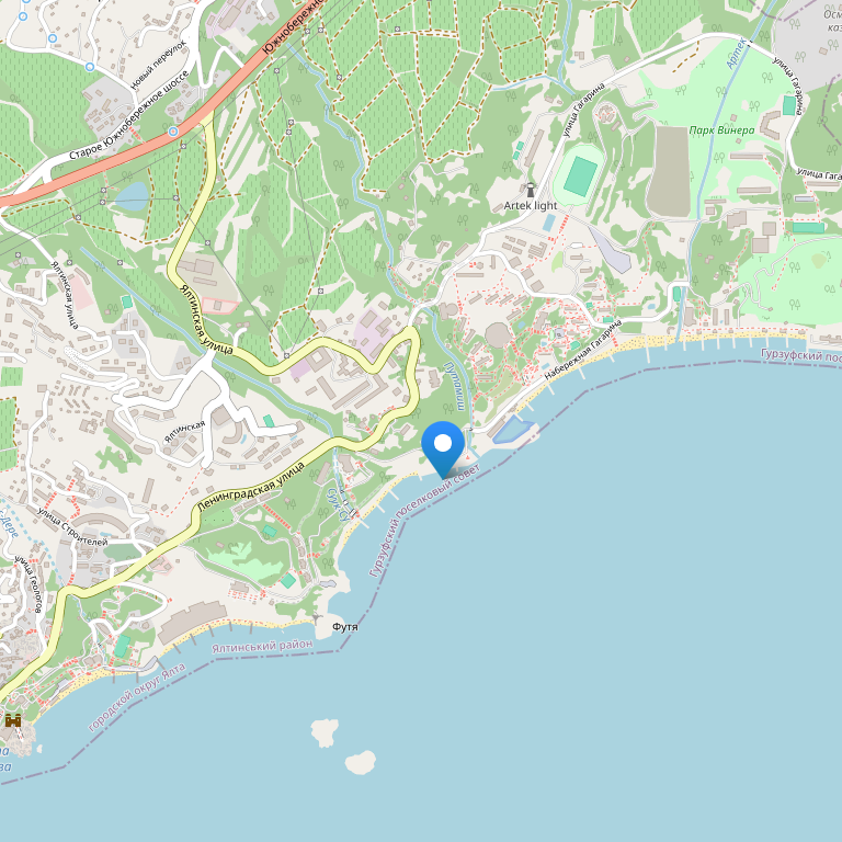 Лагерь расположен в Крыму, в одном из красивейших мест планеты - на побережье Черного моря, в 12 км от знаменитого южнобережного курорта - города Ялта, в поселке городского типа Гурзуф, недалеко от лагеря находятся парк «Горного» и уникальный старинный парк - парк Гартвиса.