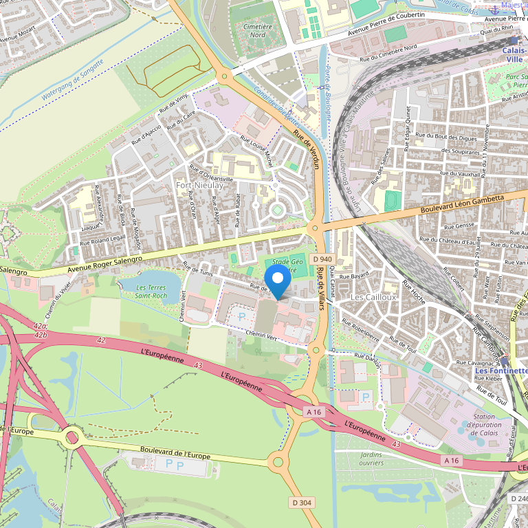 - при входе / выходе (выход 43 на автомагистрали A16) тоннеля под Ла-Маншем;