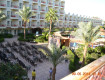 Территория-чистая, ухоженная, по размеру относительно небольшая, ограничена справа и слева и с одного торца корпусами отеля. Пальмы, много цветущей растительности, дорожки, фонариками все освещено ночью, два бассейна 1.5 метра глубиной, и детский. На территории 3-4 бара плюс бар в лобби. Есть вход в море песчаный, там мелкая лужа по сути, и с мостков, которые метров на 100 уходят...
