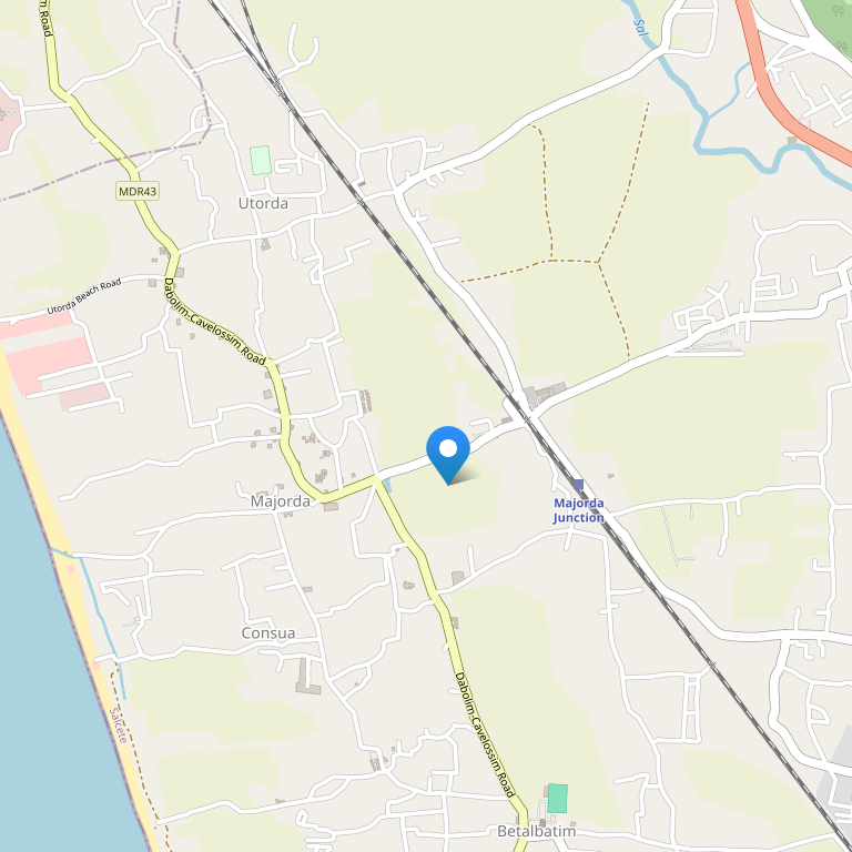 Отель расположен в южном Гоа, в 1,5 км от знаменитого пляжа Маджорда и в шаговой доступности от нескольких кафе, в 6 км от автобусного и 8 км от железнодорожного вокзала Мадгао. Расстояние до международного аэропорта Даболим составляет 20 км.