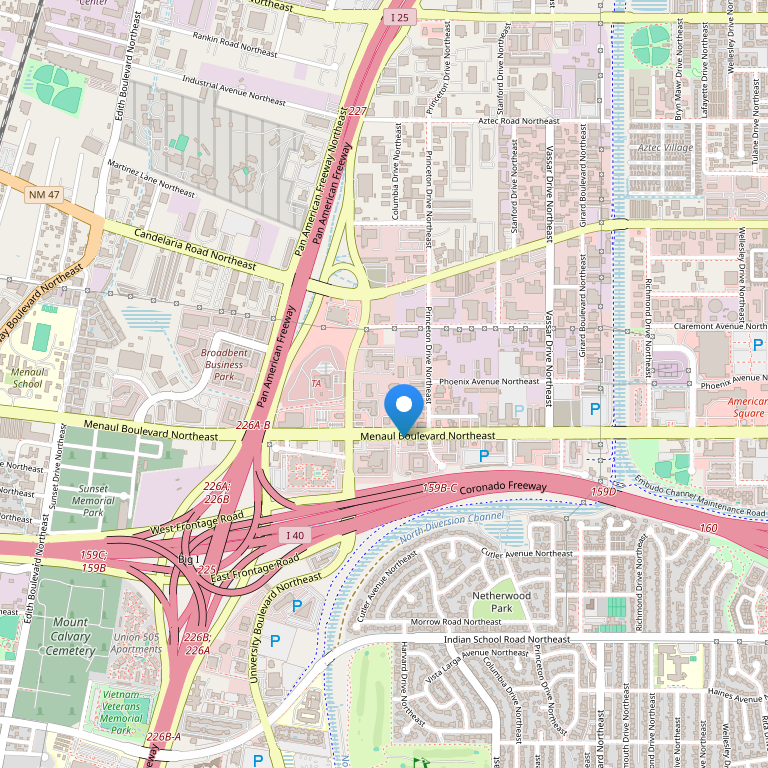 Отель расположен рядом с университетом University of New Mexico, Albuquerque International Sunport, Lockheed Martin, Kirtland Air Force Base, T-Mobile, L3, BNSF, Presbyterian и Lovelace Hospitals, а также в нескольких минутах от исторического Старого города, всемирно известных музеев, National Hispanic Cultural Center, Balloon Fiesta Park и многочисленных торговых районов.