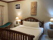 Номер(делюкс) просторный,чистый,есть:большой холодильник, чайник,фен,вода,кофе,гель/шампунь.Кровать огромная,матрас хороший жёсткий.Уборка каждый день,персонал дружелюбный,все просьбы выполняют,телевизор-много каналов и на русском языке ,есть что посмотреть в дождливую погоду.
