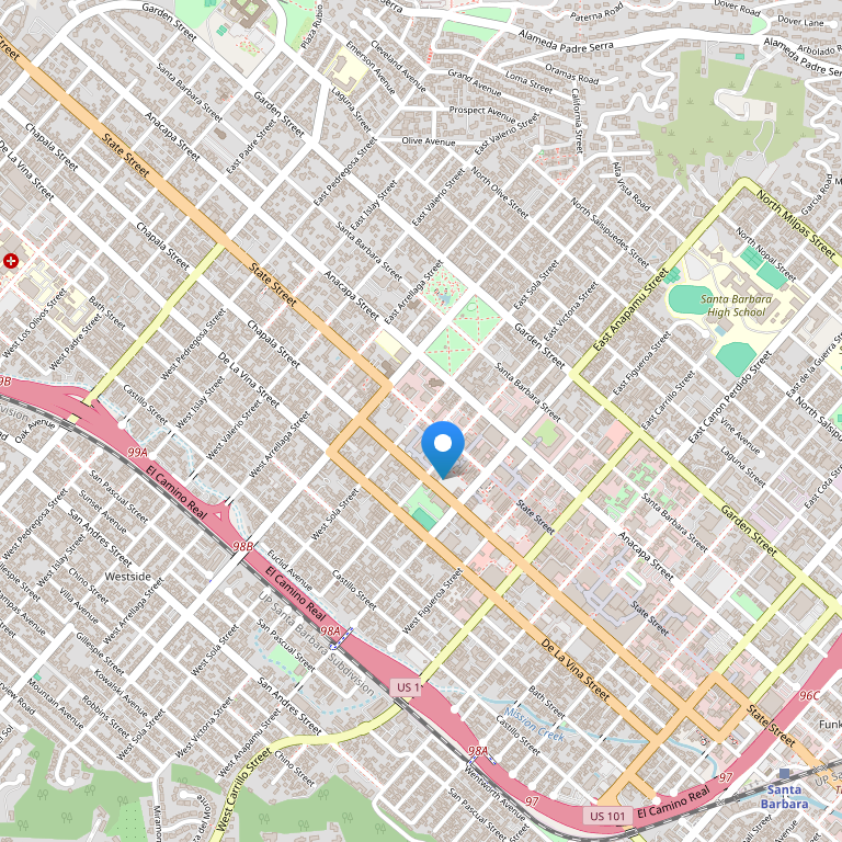 Отель расположен в Санта-Барбаре, штат Калифорния, в непосредственной близости от маршрута 1 с легким доступом к Municipal Airport
