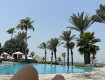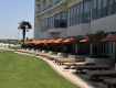 Отель находится далеко от центра, но здесь в отличие от отелей в центре зелено, свежо, свободный пляж.