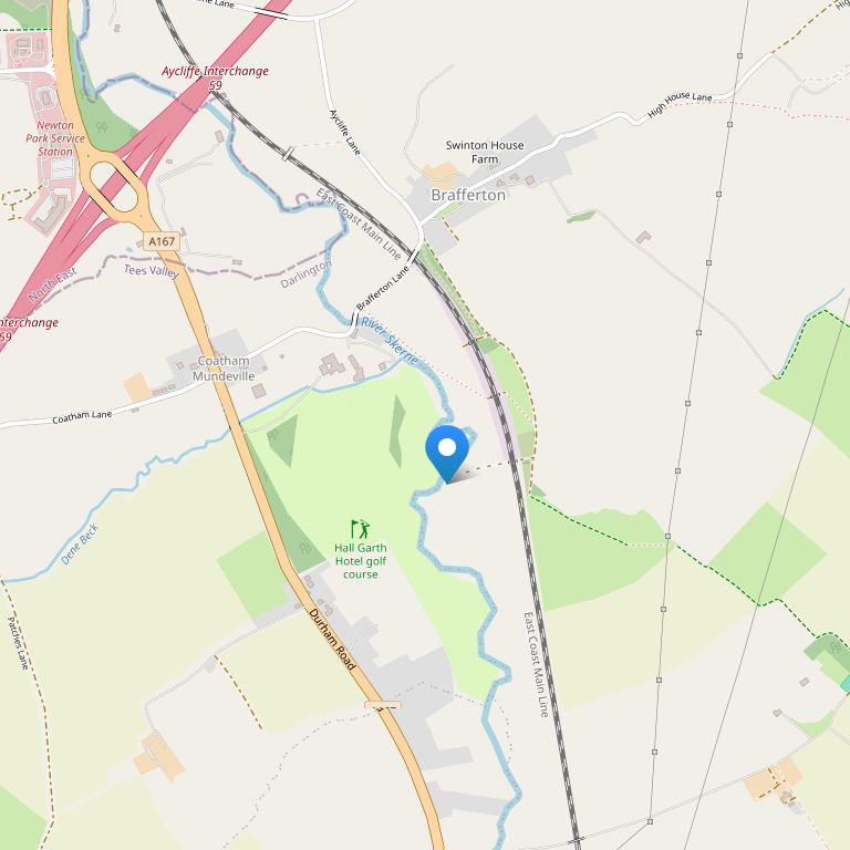 Отель расположен в красивом поместье 15 века в живописной загородной местности, в полумиле от автомагистрали А1, на территории 70 акров парковых насаждений, в 4,8 км от городка Дарлингтон и в 4,5 милях от железнодорожной станции Дарлингтона.