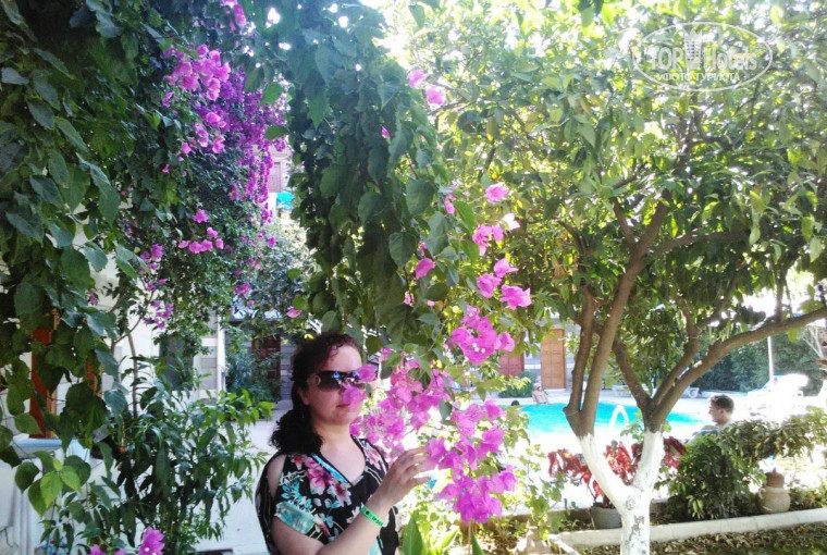 Вокруг горы, тишина и покой... (фото из окна номера прилагается)) И даже крик беспокойных петухов воспринимается как неотъемлемая часть этой богатой природы вокруг...)) Очень хороший выбор для тех, кто устал от шума и суеты большого города, и хочет отдохнуть прежде всего душой и придти в себя...) Отель скромный, но приличный, что называется, скромный, но со вкусом. Милое убранство внутри двора, в шаге от любого номера чистый бассейн, повсюду цветы и деревья, и вечно парящий бесподобный аромат вокруг... особенно вечером)) Внутри номеров чистенько, предметы первой необходимости все есть) Жаль только, что нашему человеку без холодильника, оказывается, на отдыхе совсем не комильфо..)) его тут все-таки в номере нет))) Ну, а кто приехал прежде всего насладиться морем, солнцем, покоем, теплом и беззаботностью - понравится! :) Атмосфера в отеле к этому располагает... И, судя по отзывам отдыхающих, прослеженным за несколько лет, складывается впечатление, что отель преображается и сервис улучшается))) Так что пожелаем этому отелю вырасти в полноценный отель 3-х звездочный и дорасти до 4-хзвездочного, чтоб с каждым разом всё приятней и приятней нам возвращалось и отдыхалось.. )) И пожелаем хозяину стремления и сил на эти преобразования а, главное, терпения, на вечно капризных русских туристов... ;) Джем :-* ))) <Аня>