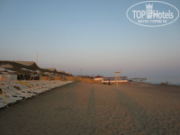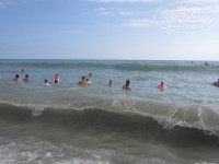 Пляж - песчаный, лежаков много. Мы всегда выходили к 10, не раньше, и всегда были места. Вход в воду - сначала песок, потом камни, потом опять песок. Начитавшись отзывов, взяли ребенку коралловые тапочки. так в чемодане они у нас и пролежали. Если пойти чуть вправо - там вход вообще один песок, но там через 20-30 м - большая каменная плита. Здесь мы купались только во время сильных волн (прыгали на волнах) .