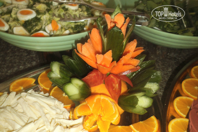 Из фруктов всегда были яблоки и апельсины. Рыба была, курица, готовят вкусно. Салат на ужин из того, чт не съели в обед - привычное дело. Практически не пробовала таких экспериментальных блюд. :) белка и овощей вполне достаточно, чтобы переесть. Супчики вкусные. Тортики так себе, и это радовало несказанно.