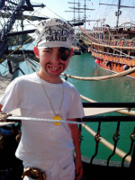 5. По сравнению с такими развлечениями, путешествие на Барбоссе для ребенка стало настоящим праздником, особенно перевоплощение в пирата и пенная вечеринка. Из минусов на Барбоссе: 1. купить пиратский набор - немыслимые деньги за китайский ширпортреб- 50 долл.; 2. Клад, который дети находят, представляет собой - значки со смайликами (ребенок был ужасно огорчен!!); 3. обещанное купание в открытом море тоже разочаровало, т.к. от берега мы были недалеко; 4. Когда нам предложили купаться, то не предложили полотенца! (опытные люди взяли полотенца с собой из отеля!); 5. Пенная вечеринка - опасное дело, надо не сводить глаз с ребенка! а его ооочень трудно увидеть, когда под пенным покрывалом визжат и барахтается человек 50 разновозрастных детей! 6. Напитки бесплатные, а закуски платные по таким завышенным ценам, что я даже не запомнила. 7. По завершении катания, на всем протяжении трапа выстроились "сотрудники" корабля и просили чаевые, протягивая под нос коробочки для денег.