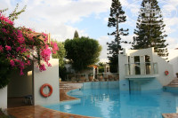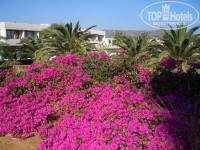 Правда когда только приехали и стояли с чемоданами на ресепшен внутреннее убранство холла отеля показалось очень скромным (посмле египетских хором тут все было гораздо скоромнее). Также расселившись в бунгало в первый момент показалось все таким же скромным. В дальнейшем я поняла, что эти вензеля и десятки квадратных метров санузла никому и не нужны. Все необходимое в номере есть : кровать двуспальная, детский манеж в очень хорошем состоянии, холодильник, TV с ОРТ и РТР планета, зеркало большое, столик, тумбочки, шкаф, сейф за отдельную плату (отдали 21 евро за 14 дней). Номер выходил в сад с кусочком вида на море. Перед номером была большая зелена лужайка с пальмами и рядышком бассейн. До моря идти 2 минуты. Кругом полно лежаков, можно отдыхать хочешь у своего бунгало, хочешь под пальмой, хочешь на пляже - вообщем все очень удобно. Отель утопает в зелени. Причем это не просто зелень, а целый ботанический сад , каждое растение и дерево имеет свою табличку с названием, а по воскресеньям утром водят экскурсию по отелю, где рассказывают о растениях, произрастающих в отеле и показывают номера. Единственный минус - это муравьи, которые достали ползать по ванной. Они протоптали свой шелковый путь с улицы к нам в номер, поэтому не всегда было приятно видеть на раковине, зубных щетках и прочих вещах личной гигиены этих маленьких рыжих насекомых.