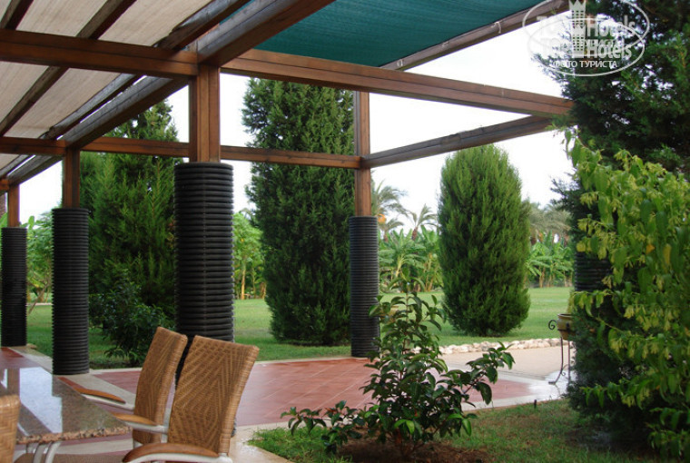 Территория: Великолепная, ухоженная, очень много растительности, экстерьерчик в стиле " Балли ". У бассена в любое время всегда можно найти свободные лежаки.