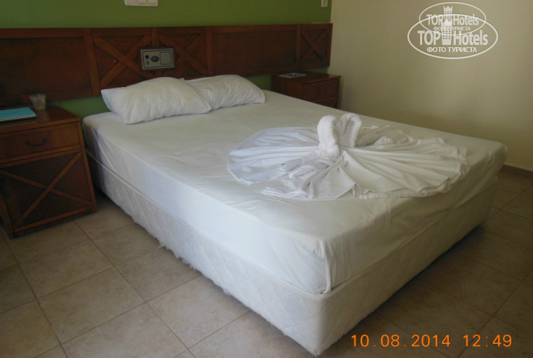 В общем неплохо, но номер 102 дали над самым баром, пару раз беспокоила громкая музыка. До моря 400 м, лежаки бесплатные. Вода в море очень горько-соленая, если опустить голову в воду, потом щиплет глаза. Питание скромное, хотели похудеть, но остались с тем же весом. Хозяин немного знает русский язык, очень приветлив с женщинами, особенно с теми, что приехали без мужчин. Мой видеотзыв см. http://www.youtube.com/watch?v=DlO-Bf17QRQ