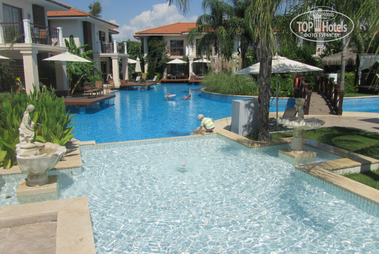 Развлечения. Шоу – на них экономят (за 8 ночей было 4 или 5 и то одно я видел в предыдущие годы), заменяя живой музыкой или глобальной дискотекой с аниматорами. Хотя в некоторые дни было и то, и то. Взрослая анимация – стандарт, выделить можно большое количество танцев, рогатку – Ангри Бердс и пожалуй проведение аквааэробики в море. Детский городок – хороший, правда ребенка не отдавали (ему почти 3 года), хотя возможность была. Разнообразные комнаты – лего, игрушки для 2-х леток и комнаты с шариками, как в парках и торговых центрах, большая открытая площадка с горками и полосой препятствий и большим количеством машинок, самокатов. Детскую анимацию не могу оценить, а вечером на мини – диско ходили раза 3 все обычно, правда порадовала раздача подарков (рюкзаки, значки, мини-игрушки) в конце почти каждого вечера всем – дети довольны и счастливы. Аквапарк – впечатляет только горка-улыбка, на второй большой горке можно кататься только на матрасе для двоих, а таких матрасов всего 4!, поэтому катались всего раза 2, но тоже хороша, остальные 3(5) горки – обычный слабый стандарт. Детям нравилась горка – 4 съезда в детском бассейне. Но горки и те, и те, и в детском клубе надо заменить, они какие-то потертые. Вот что порадовало, так это бассейны: во-первых - их количество, во вторых – величина, в-третьих – виды, про бассейны Lake House уже писал. Роскошный Spa: различные виды саун, большой бассейн, свежевыжатые соки и красота. А в предпоследнюю ночь мы нашли ночной клуб (на этаже, где главный ресторан, вход через кинотеатр) – весело и, наконец, на дискотеке русские-ремиксы. Народу человек 10-15, но все равно зачет.