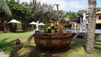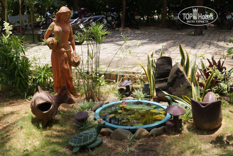 В целом в отеле все хорошо, за исключением выходных, приезжают вьетнамцы (как мы ездим на дачу) но это не критично, просто становится очень шумно, персонал не понимает ничего ни на русском ни на английском, но стараются, есть негативный момент в плане конкретного нашего случая, нам обещали какой-нибудь подарок как молодоженам, но так ничего и не подарили, хотя при нашем заселении гид просил нас поздравить. Конечно это решает отель, но на сколько мы читали отзывы , у них это принято. Обидно. Пляж замечательный, чистый песок, крабики носятся, ракушки везде:) Всегда есть свободные лежаки, как только подходишь к ним , к тебе уже несется доброжелательный вьетнамец с матрасом и полотенцем:) и второй вьетнамец с кокосом снятым прямо с пальмы за 40 рублей (25000 донгов). Очень красиво на территории отеля, чисто , ухоженные цветочки, маленькие и большие пруды с лилиями, очень круто:) За территорией отеля делать нечего , там только дорога с мотоциклистами , пройдя метров 500 есть магазинчик и кафе там же, мы там не кушали, только покупали алкоголь, но соседи говорили что там вкусно кормят. Если пройти еще метров 500-700, есть кафе русских, вот там мы обитали, оооочень вкусно кормят, можно заказать как вьетнамскую кухню, так и русскую . И если в первую неделю нашей еды не хочется, то к концу отпуска ни какой другой еды уже не надо. Мы заказывали акулу, нереально вкусно, но заказывать надо за сутки, т.к. хозяева закупят и привезут ее именно для вас, свеженькую:)из экзотики есть кобра, личинки бабочек и тд.. Все очень не дорого, по сравнению с отелем вообще копейки. Кафе называется "таверна", когда мы там были вывески еще небыло, но ориентир был красный флаг с правой стороны дороги. Хозяев кафе зовут Андрей и Ольга (его жена), очень приятные люди, с Андреем можно поговорить, спросить, что интересно, он расскажет как есть на самом деле, а не как обещают гиды:) в кафе много животных, обезьянка, дикие кобаны, уточки, птички- курочки:) они обитают на заднем дворе, но можно попросить Андрея, он покажет.