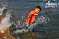 У отеля отличное расположение, очень уютная бухта. Пляж песчаный, при заходе небольшие камни, подальше довольно большие валуны (никакой проблемы с ними нет, обувь не пользовались даже дети). Море чудесное, чистое и теплое..