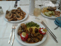 Вот в ресторане (так называемом) нас ждало некоторое разочарование: это немного не то, что пишут в отзывах а-ля "супер-пупер" и "класс-класс-класс". Будьте готовы к тому, что Вам предстоит поиск не острой, хорошо приготовленной еды методом проб и ошибок. Зачастую аппетитная картошка фри была сыровата, паста(макароны в томатном соусе) жесткими и прилипающими, мясо - трудно жующимся. Ну и как во всех отелях, практикуется метод безотходного производства: не съеденные фрукты утром можно найти порезанными и залитыми в сиропе, брюссельская капуста утром появляется в омлете и т.д. Я к этому давно привыкла, но пишу это только для того, чтобы люди не вводились в глубокое заблуждение по поводу питания, и не искали рябчиков с ананасами. Вообще, что-то было невкусное, что-то острое, что-то очень вкусное, прямо за уши не оттянуть. Йогурт, слойки, печень с подливой, индейка, оливки, торты, мороженое, фасоль, рис, гамбургеры в баре на пляже - все это на ура! Ну да на вкус и цвет.... Огромный плюс - бар на пляже, после обеда и до самого вечера кормит проголодавшихся, что очень удобно по приезду с экскурсии. Там можно и полноценно пообедать, и перекусить фруктами. Спиртное неплохое, вино и пиво отличное, фреш из апельсинов - 4 динара, он того стоит.Очень порадовало, что никто не смотрел косо в сторону выносящих на пляж фрукты и мороженое.