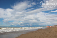 Пляж большой, чистый (не считая двух дней, когда была непогода и шторм). Было много места для игры на песке с ребенком. Лежаков много и хватало всем, но стоят они очень близко друг к другу и порой доставляло дискомфорт от этого. Очень порадовала детская площадка на пляже, с тентом от солнца. Так же понравились белые качели (4 шт.) на пляже возле бара, но не были понятны действия отдыхающих, оставляющие свои вещи на них, как знак «занято».