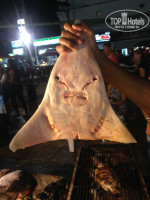 Питание: брали только завтраки, в общем неплохие. 2-3 вида гарнира, сосиски, ветчина, тосты, арбузы, ананасы, из 2х яиц приготовят на выбор яичницу, омлет или отварят+ кофе, чай. Каждый день все повторяется. Обедали и ужинали в разных кафе, на рынке можно покушать свежей рыбы: сомик 30 см 100 бат, тунец такой же 120 бат, выбираете и сразу ее готовят. Кушали крокодила, не понравился, мясо как резина. Примерно на 4 ый день на тайскую еду не могли смотреть, хорошо рядом много русских кафе Колобок, Маруся, Апельсин и др.