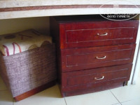 -постельное белье серое, полотенца потертые;