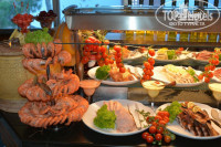 Питание - выше всяких похвал! Мясо, рыба, королевские креветки.всевозможные фрукты, Многообразие и широкий ассортимент поражает.Блюда на любой даже самый привередливый вкус.Огромное спасибо работникам ресторана, начиная с поваров и заканчивая официантами за их профессионализм и мастерство.Непосредственно для отдыхающих с детишками - если Вам чего то не достает, то вы можете обратиться с просьбой, например отварить бульончик для вашего малыша и вам с радостью и улыбкой помогут и в этом вопросе.